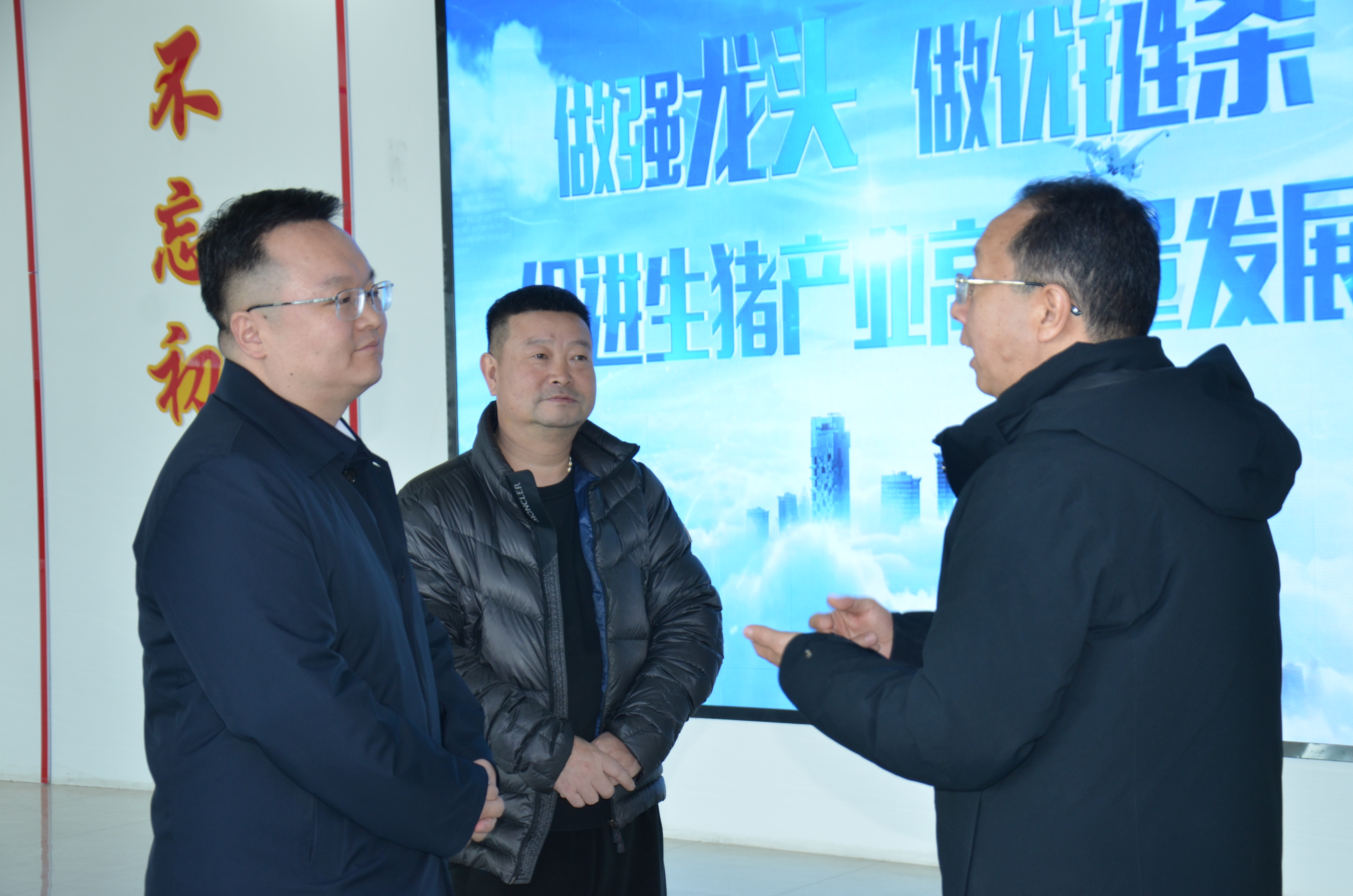 调研团队一行在凯永集团董事长胡凯的陪同下,深入集团5G大数据中心,养殖事业部相关负责人向调研团队详细介绍了企业在构建“饲料生产—核心育种—规模养殖—生猪屠宰—冷鲜肉销售”为一体的生猪全产业链方面取得的成果。